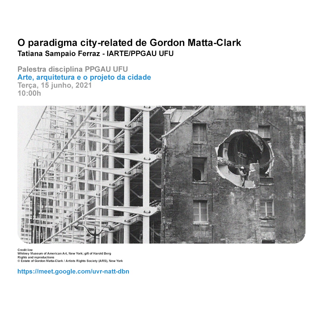 Palestra: O paradigma city-related de Gordon Matta-Clark com Tatiana Sampaio Ferraz - IARTE/PPGAU-UFU